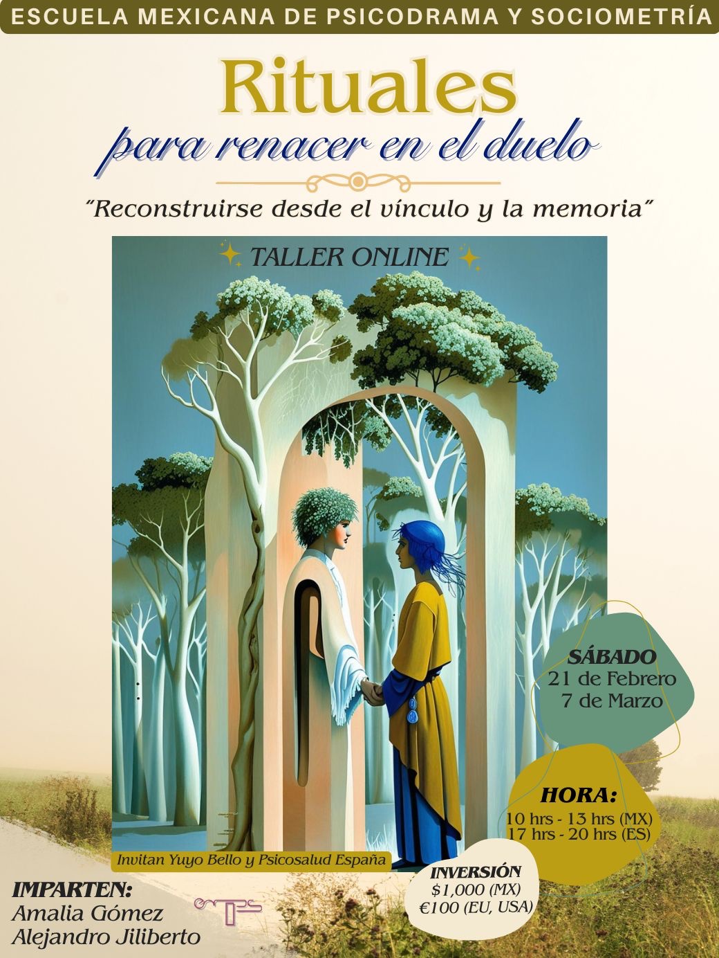 La pérdida de un ser querido, una separación o un cambio significativo en la vida puede dejar a las personas en un estado sorpresa, apertura, confusión y/ o dolor. Con el taller online «Rituales para Renacer ante el Duelo», organizado por la Escuela Mexicana de Psicodrama y dirigido por la destacada L. Amalia Gómez Gómez y Alejandro Jiliberto Herrera, se ofrece una oportunidad única para explorar y comprender el proceso de duelo a través de rituales significativos.